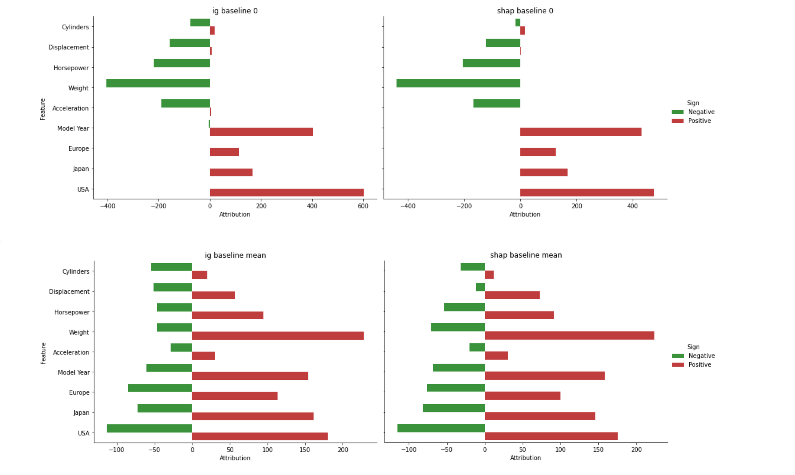 This notebook contains an example of two feature attribution methods applied to a PyTorch model predicting fuel efficiency for the Auto MPG Data Set.
